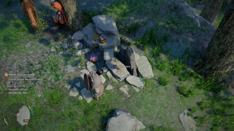 - Location: East of Camp Bjornlund, north of the previous artifact. By default, the camp is captured by Black Bears. The altar is located at the intersection of two paths near the camp.