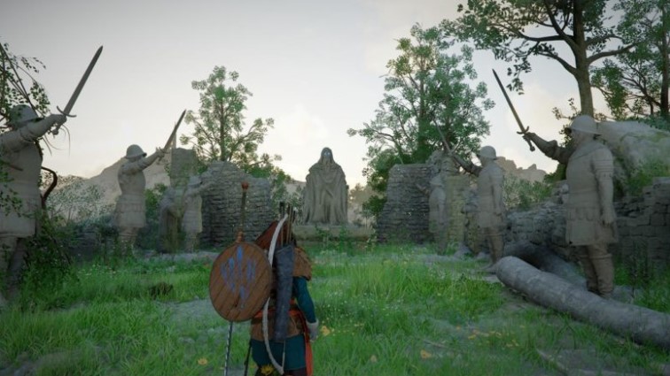 The statue puzzle in Drakesfall Gorge works like a game of “Red Light, Green Light.” When the king’s statue faces you, along with Hernand’s soldiers, its eyes will glow blue. You must stop immediately. As soon as the king turns his back, you can move toward him.