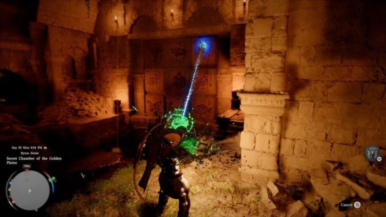 To find the secret room, head to the Golden Plains location (Golden Plains sign on the map), near Byron’s estate, and head southeast of the “question mark” until you come across some ruins.