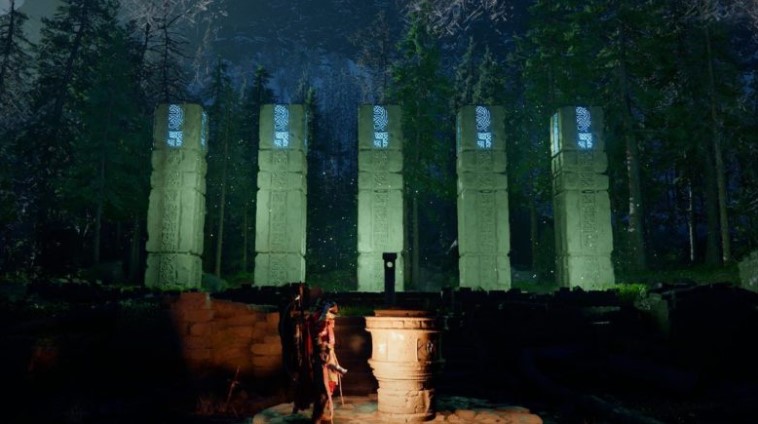 When you reach the Snowy Mountain Ruins near Misty Pool, you’ll see a single large column rising from a raised platform. Stepping on the stone floor and the small device in the center will raise four more columns. To complete the puzzle, these four columns must be positioned at the same height as the original.