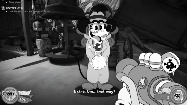 Return to the center of Mouseburg, the game’s hub, talk to Tammy Stopka again and give her the Western set poster. She’ll reward you with three blueprints!