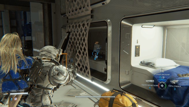 There are two doors to the left of the emergency hatch. The one closest to the hatch is the one you’re interested in. Enter the room where you’ll find a cartridge holder. This will increase your maximum number of repair cartridges to two.
