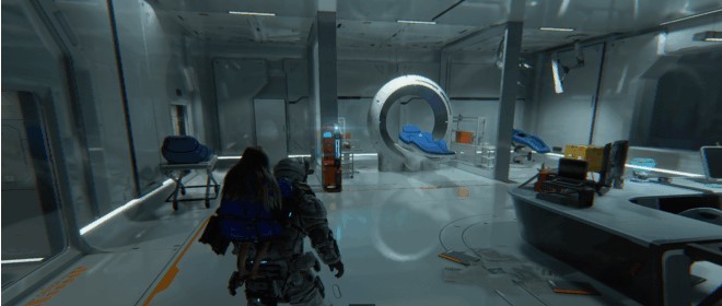 Once you restore power and open the first door, you’ll find yourself in a corridor. Behind the glass on the left, you’ll see an object shaped like “Earth.” This is an NZI, one of the collectibles in Pragmata. It’s inaccessible from here.
