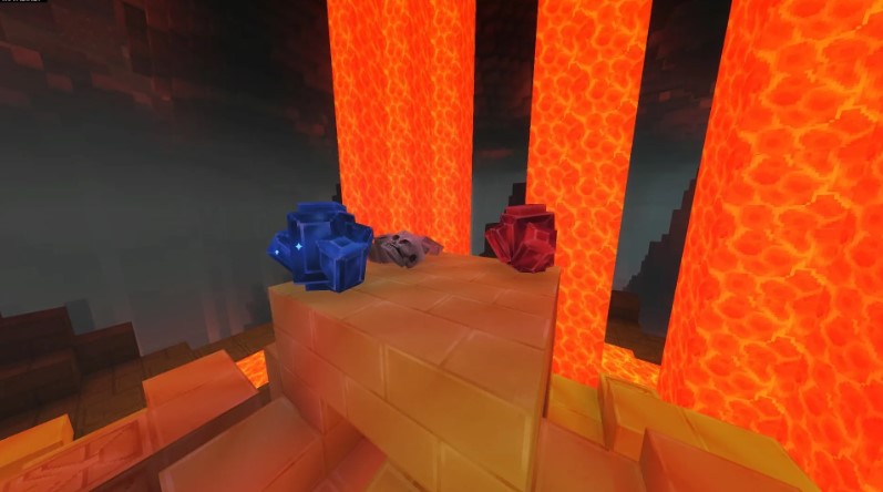 Both of these gems are typically found inside volcanoes on volcanic islands . If you descend into the crater of such a volcano, you might discover a shrine-like structure constructed from gold blocks. In our case, we found a ruby and a sapphire lying atop one of these golden structures. If you’re lucky, there might be chests nearby that might also contain additional gems.
